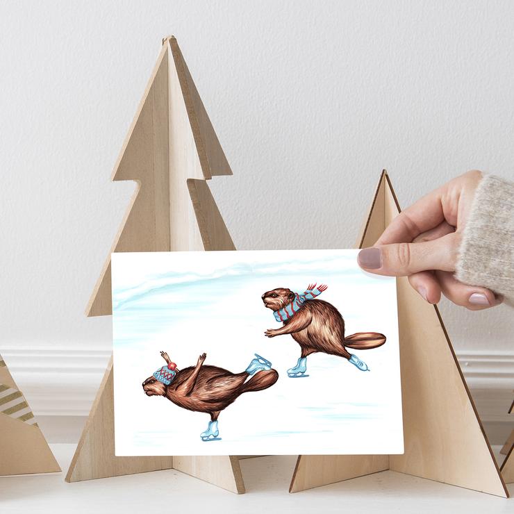Carte de souhaits - Castors en patins