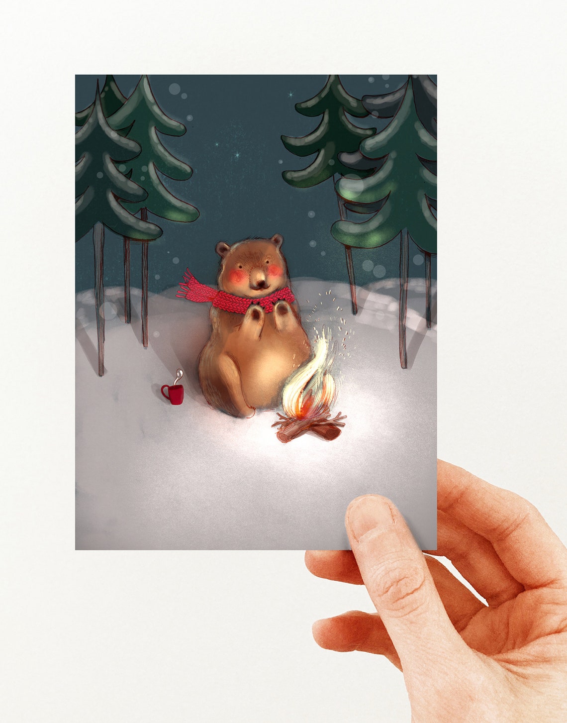 Carte de souhaits - Ours près du feu