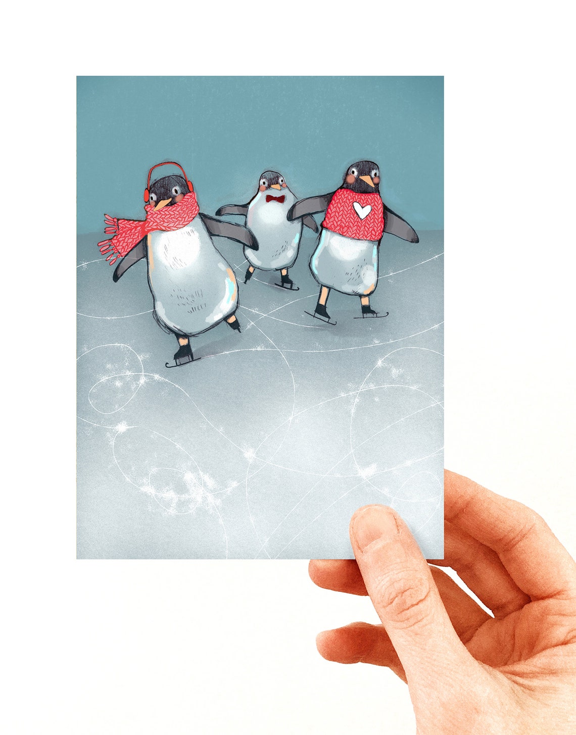 Carte de souhaits - Pingouins patineurs