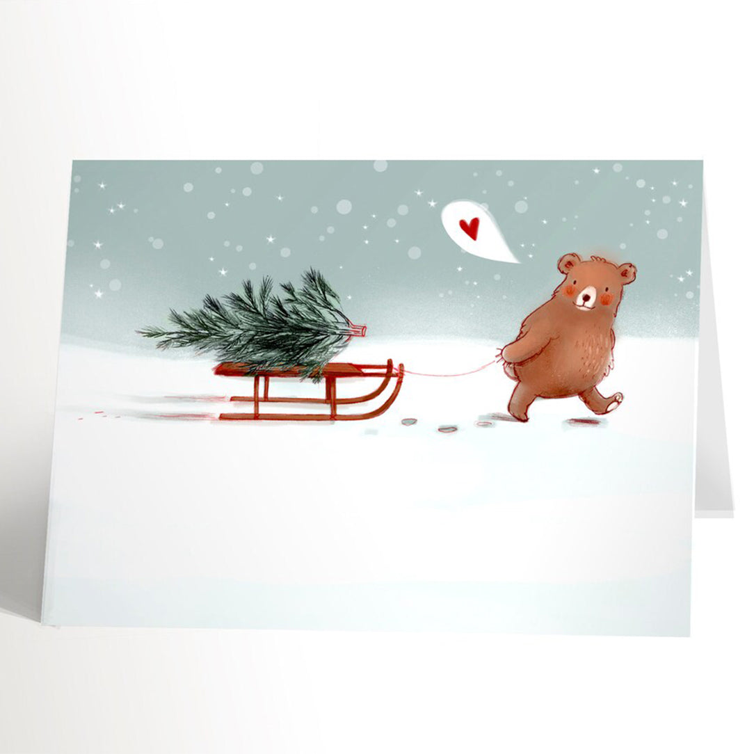 Carte de souhaits - Ourson au traineau
