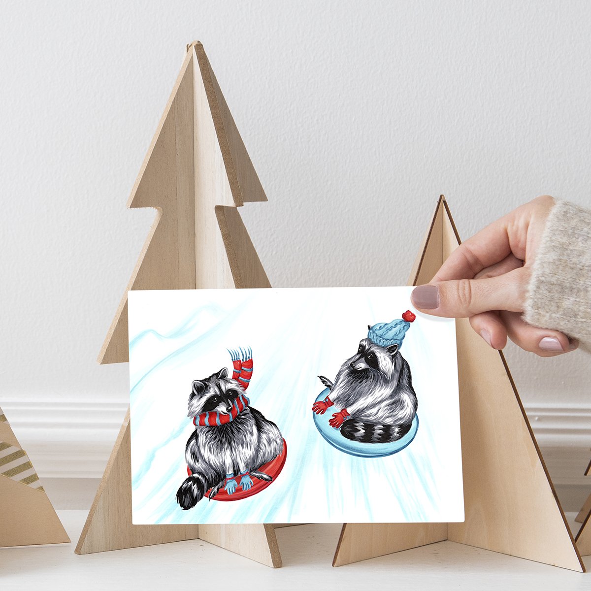 Carte de souhaits - Ratons qui glissent