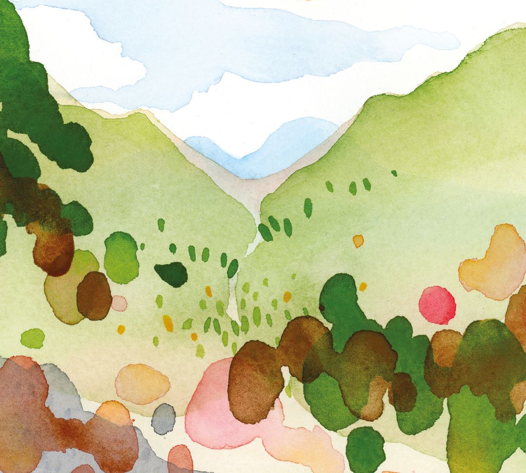 Apportez une touche de quiétude naturelle à votre espace avec cette reproduction de l’aquarelle Riverain d’Hélène Monfort. Artiste française installée au Québec, Monfort s’inspire des moments passés au cœur des paysages québécois. Cette œuvre minimaliste, composée de taches colorées délicates, suggère un lac ou un cours d'eau bordé d'arbres et de collines.
